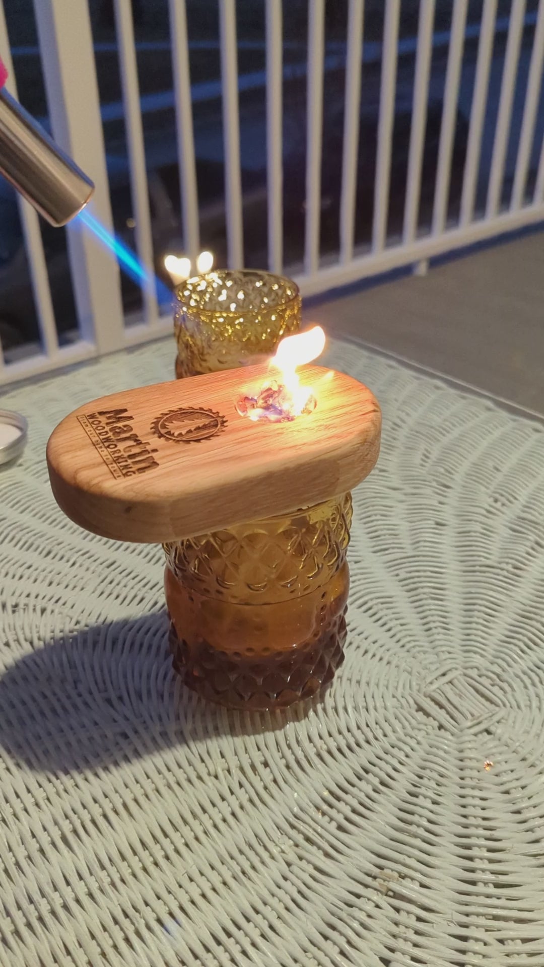 Take your mixology skills to the next level with our Oak Cocktail Smokers! Handcrafted by US veterans from repurposed solid oak tabletops, these unique pieces introduce a sustainable element to your bar arrangement. Infuse your beverages with a delightful smoky essence that will captivate your guests. Each smoker comes with a tin can of cherry shavings to kick off your flavor exploration. All you require is a torch to get started! Smoker dimensions are approximately 5.5"L x 3.5" W x 1" Thick.